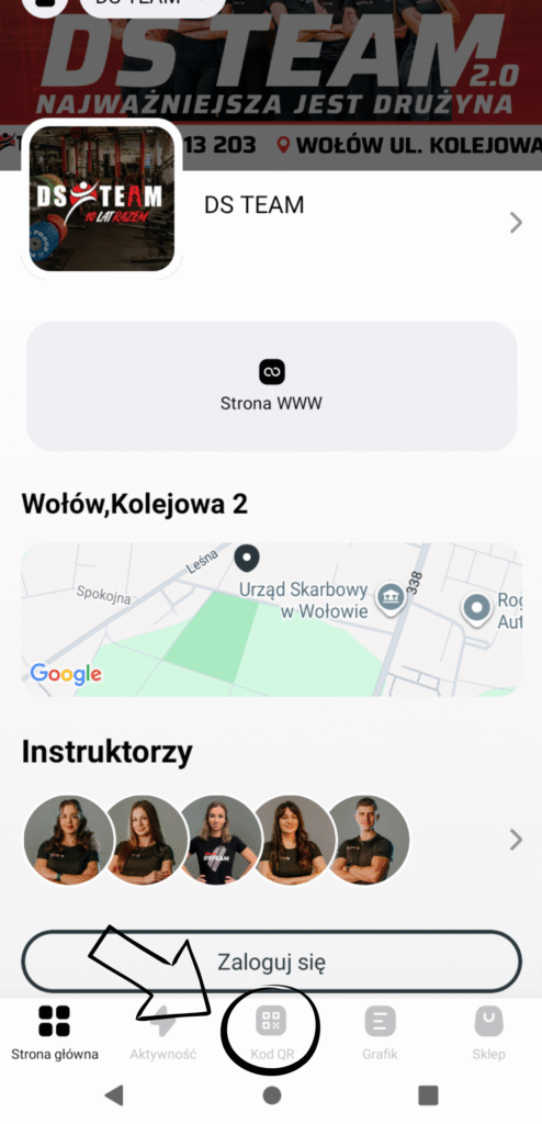 Wejście poprzez KOD QR