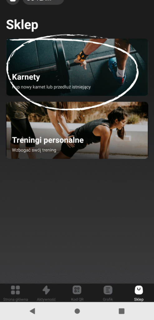 2. 2) Wybierz zakładkę Karnety