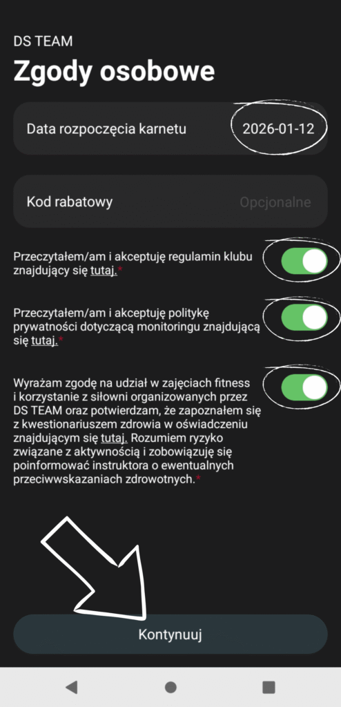 4. 4) Wybierz datę rozpoczęcia się karnetu